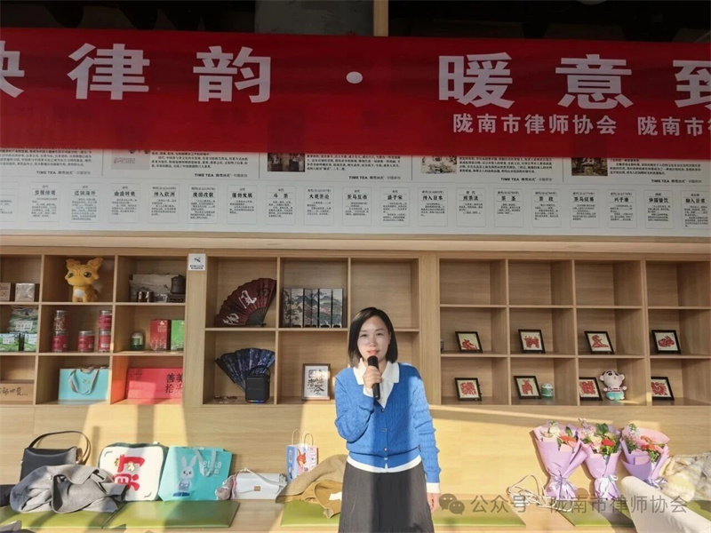 接着,陇南市律师协会副会长、甘肃五凤律师事务所主任张芳丽致辞。张主任的致辞不长,语气务实:肯定女律师在法律服务与社会工作中的付出,指出协会将继续在制度与资源上给予支持。