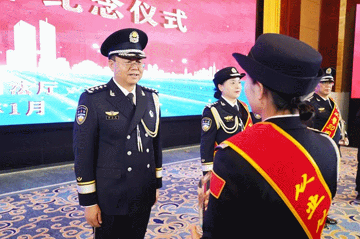 庆祝仪式在庄严的国歌声中拉开序幕,全体人民警察警容严整、庄严肃立,面向警旗敬礼、集体宣誓,重温入警誓词。全省监狱、戒毒系统优秀人民警察代表韩高林、刘慧作了发言,谢又生为新入警和晋升警衔人民警察代表颁授警衔,为从业从警30年人民警察代表颁发荣誉杯。