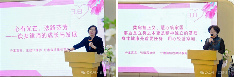 动特别设置了资深与年轻律师分享环节。资深律师王建华、张海霞、蔡菊花围绕“女律师如何平衡事业与家庭”“律师从成长与发展”等角度分享心得。年轻律师董睿、杨文素等则以“青春逐梦法治”为主题,畅谈执业感悟与心得体会。这些分享不仅彰显了专业智慧,更传递了女性在法治建设中的坚韧与光芒。