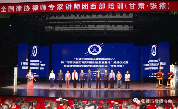 2019年5月25日—26日,“中华全国律师协会律师专家讲师团西部培训班(甘肃-张掖)”在位于河西学院的张掖市律师协会律师培训中心开班。本次培训邀请到北京大成律师事务所高级合伙人师安宁律师、北京易和律师事务所主任池英花律师,北京德恒律师事务所管理合伙人、北京西城区律师协会会长王兆峰律师到会授课。酒泉市、嘉峪关市、金昌市、武威市、陇南市、庆阳市律师协会的律师代表,以及张掖市全体律师、河西学院法学院全体师生共计六百余人参加了此次培训。