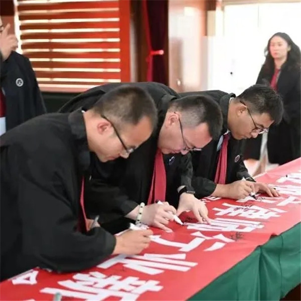 所有律师在“严格依法规范执业树立律师行业新形象”横幅和承诺书上郑重地签下自己的名字,庄严承诺坚定中国特色社会主义理想信念,全心全意为人民群众服务,坚定法治信仰,把维护公平正义作为核心价值追求,牢固树立诚信意识, 热爱律师职业,珍惜律师荣誉。